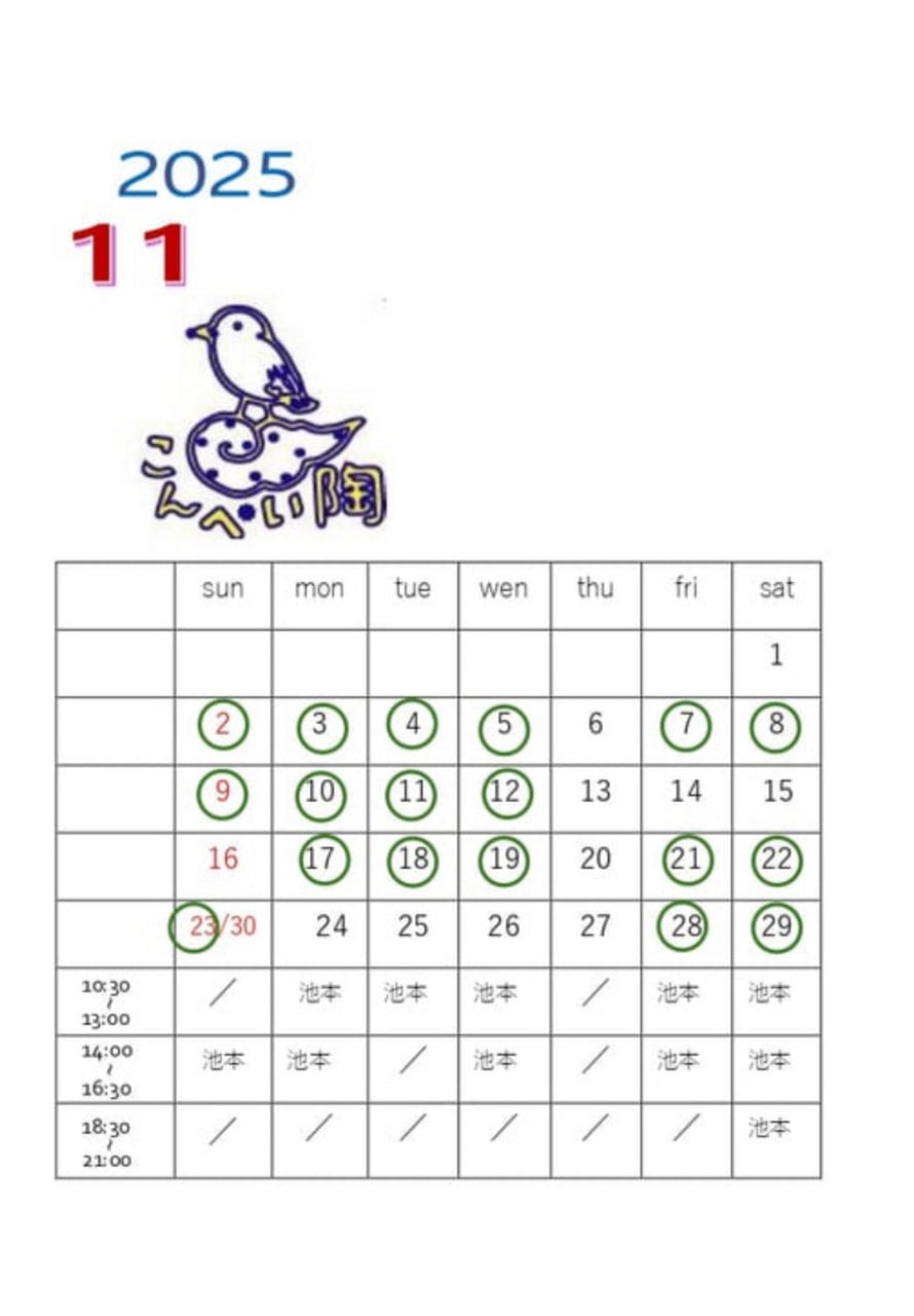 11月のスケジュールは変則的になっていますので、ご確認の上いらしてください。