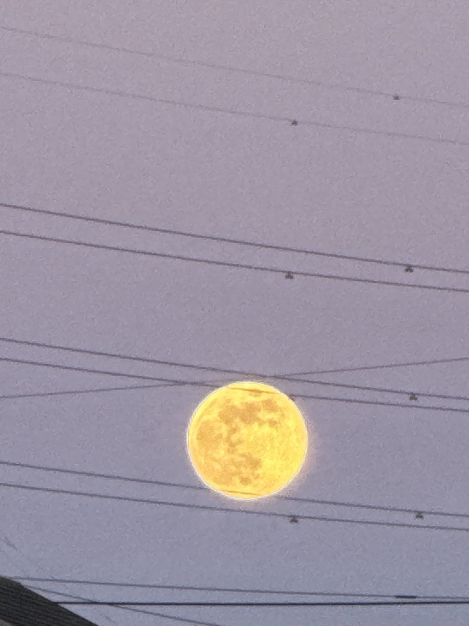 夕方、東の低い空に大きな満月🌕を見つけてなんだか得した気分で散歩しました。